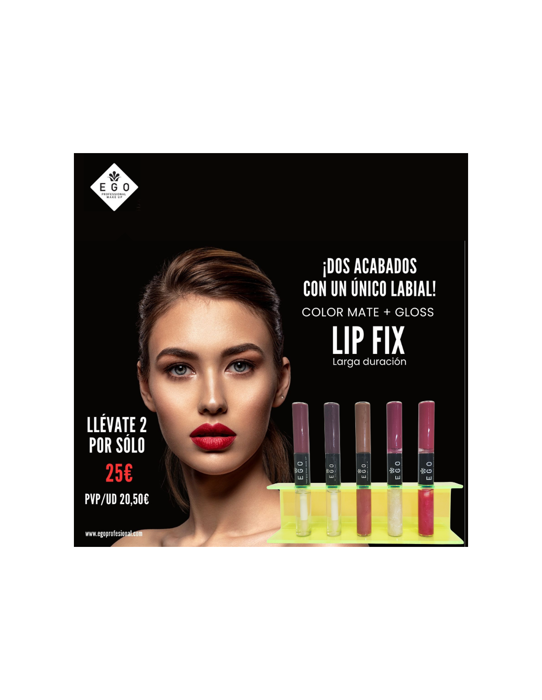 Comprando 5 uds x 5 colores Lipfix (813, 815, 816, 818 y 819) se incluyen como obsequio expositor, cartela y 5 testers (1 por color), con opción de elegir otros tonos disponibles: 802, 803, 813, 820 y 821.