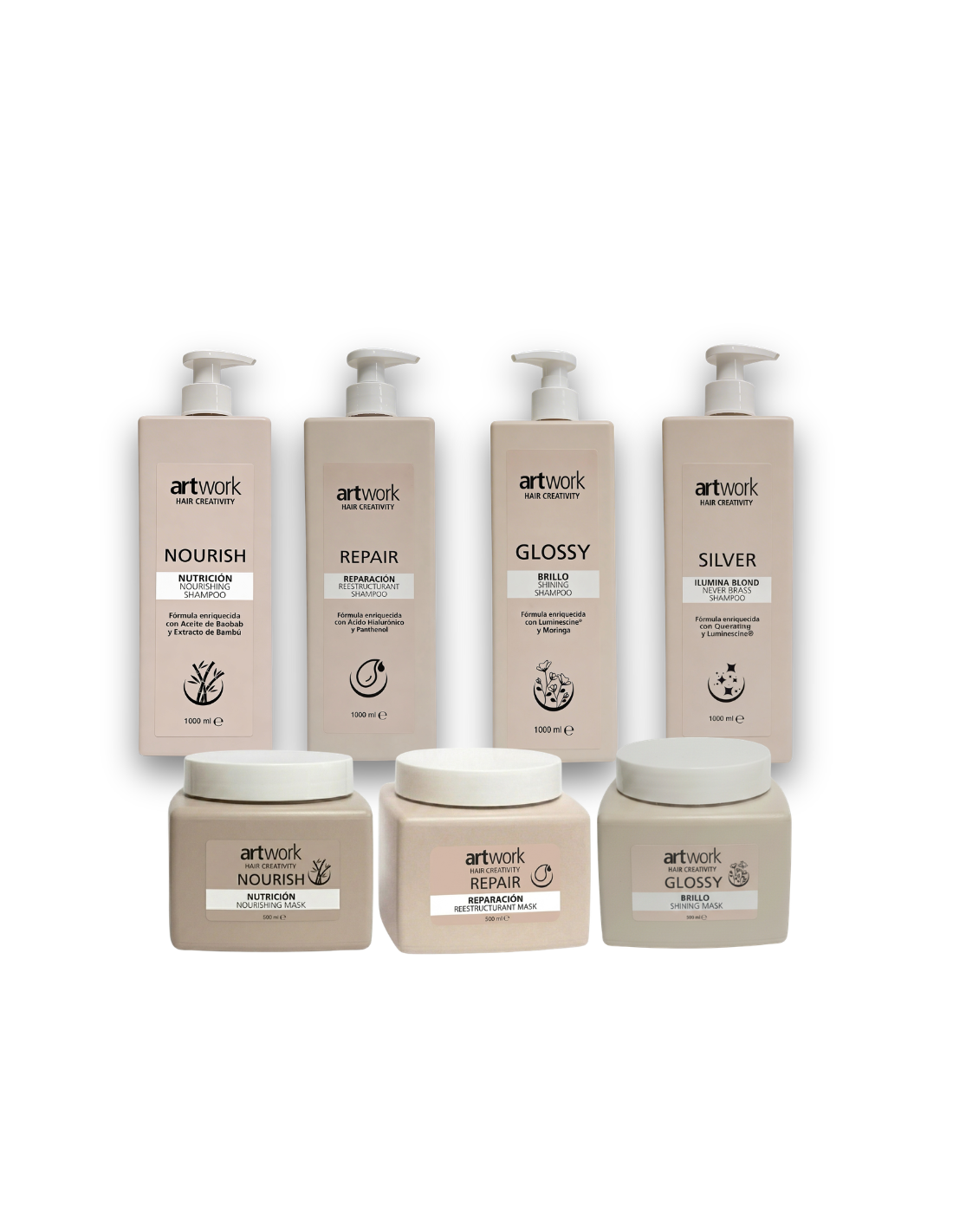 - 8 champús de 1000 ml (2 uds. × 4 líneas)